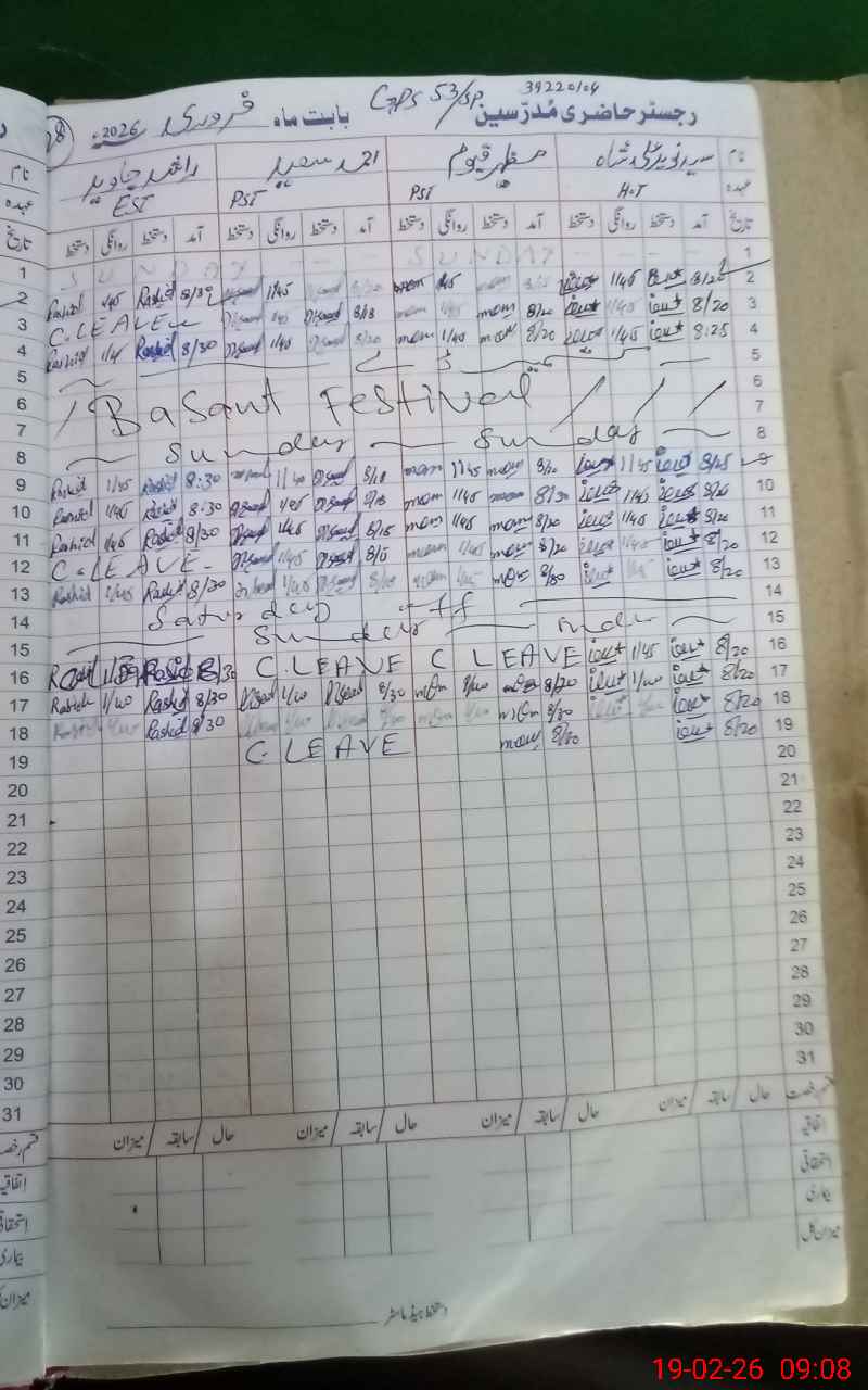 | Name: SY**** MU**** NA**** AL**** SH**** Designation: (School Headmaster's/Headmistress's) PST Phone/Cell Number: 03**** |