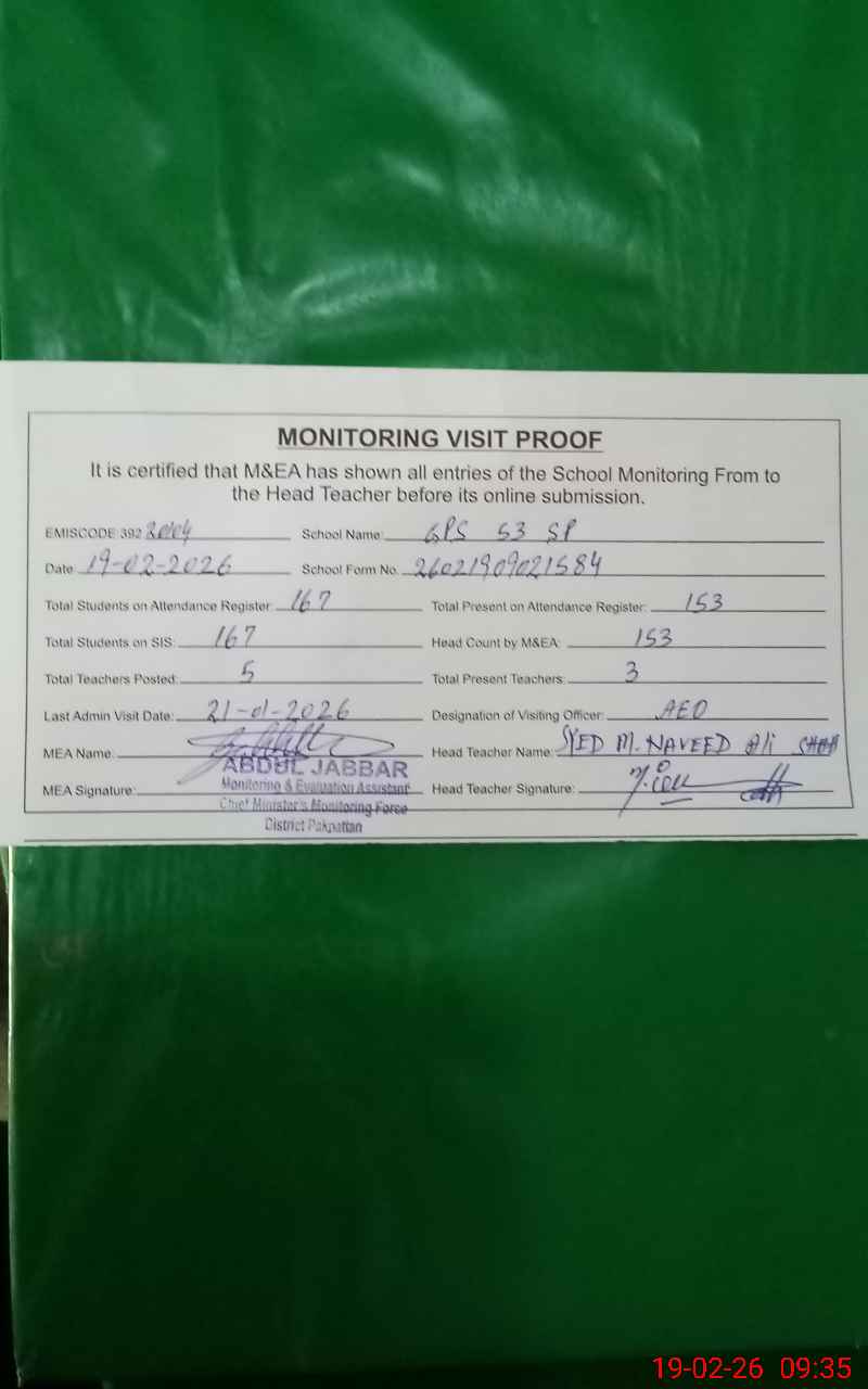 | EMIS Code: 39220104 | Name of School: GPS 53 SP | |||