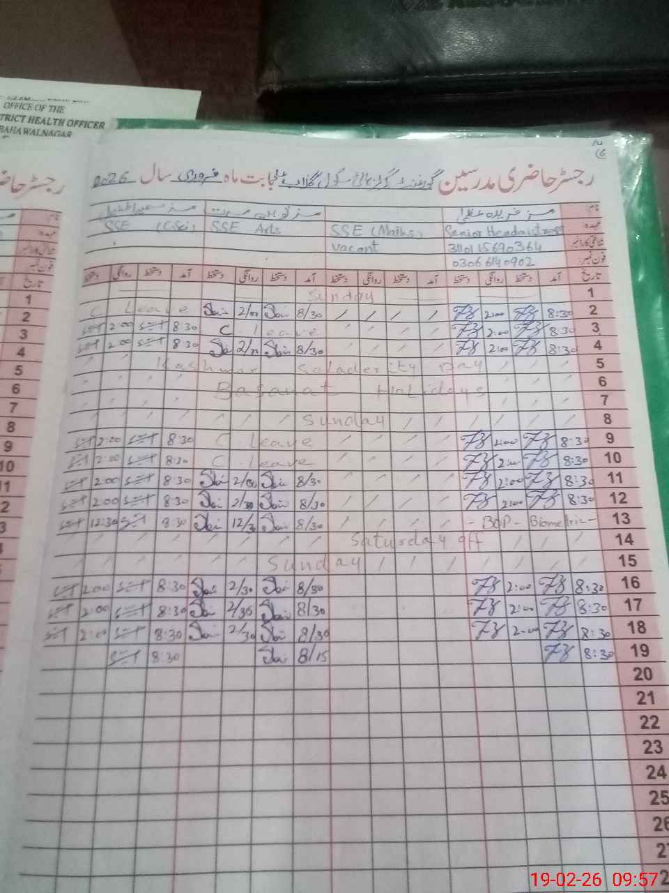 | Name: Na**** Na**** Designation: (School Headmaster's/Headmistress's) SST G Phone/Cell Number: 03**** |