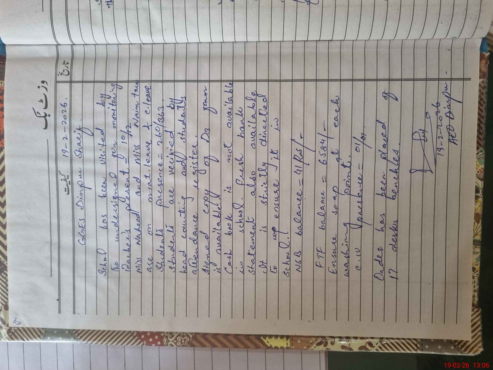 | Certified that this School was Inspected by the Undersigned MEA/DMO Today and the Information Stated Above is as Per Record. | |||||