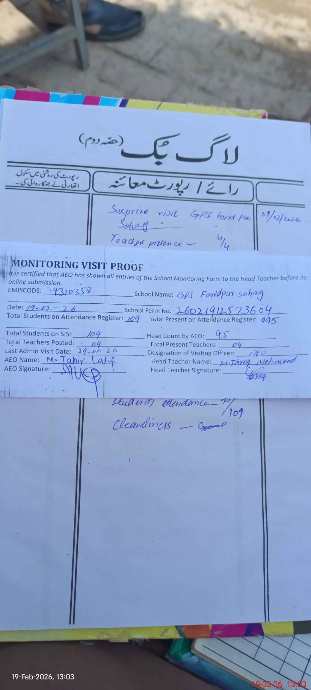 | EMIS Code: 39310358 | Name of School: GPS FARID PUR SOHAG | |||