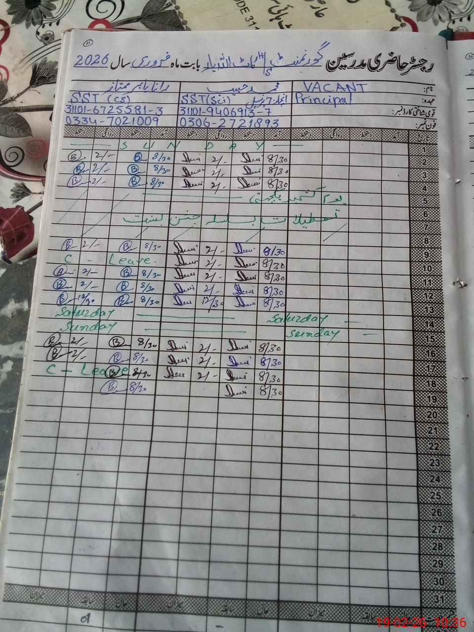 | Name: MU**** HA**** Designation: (School Headmaster's/Headmistress's) SST SCI Phone/Cell Number: 03**** |