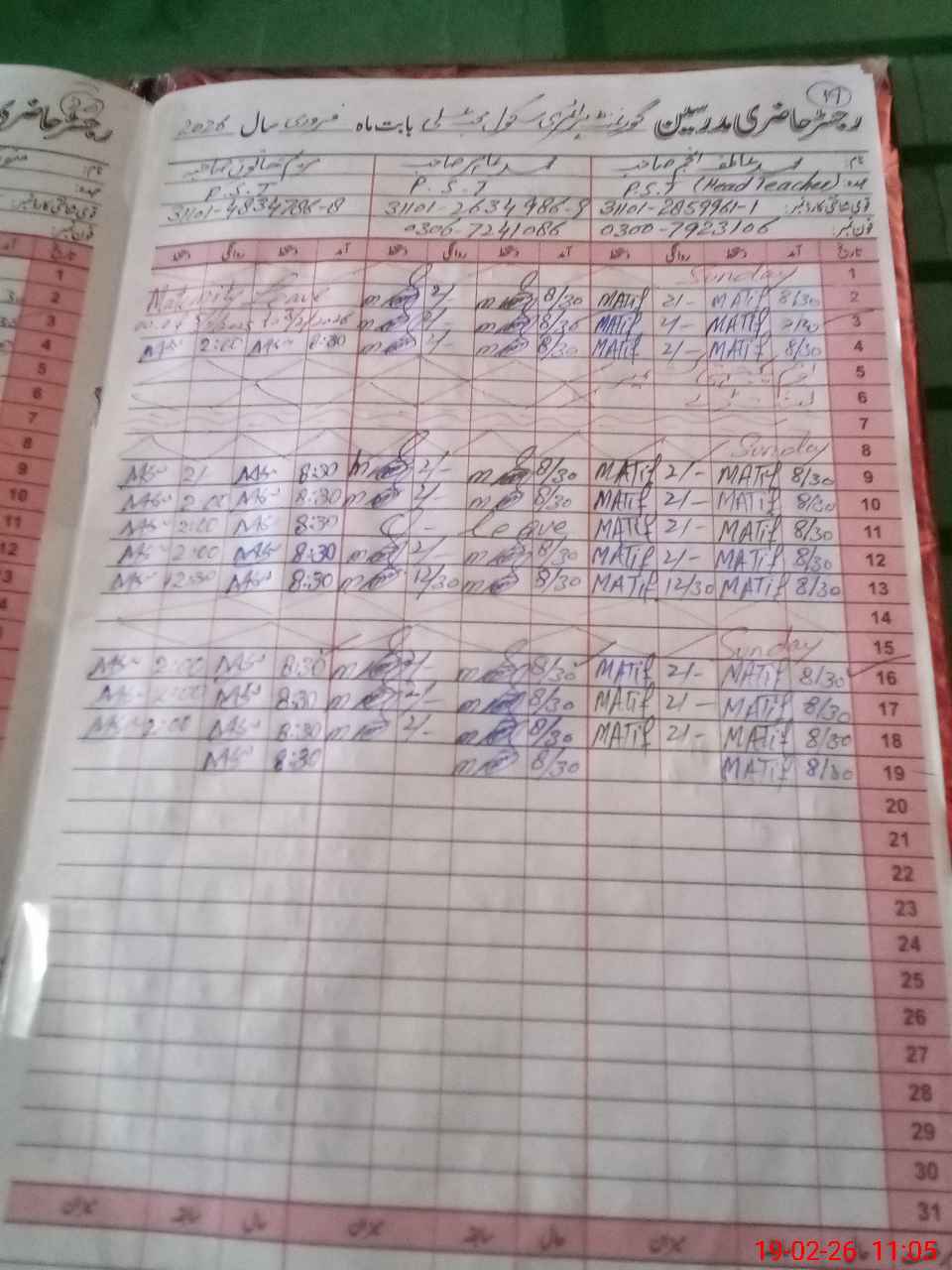 | Name: MAt**** An**** Designation: (School Headmaster's/Headmistress's) PST Phone/Cell Number: 03**** |