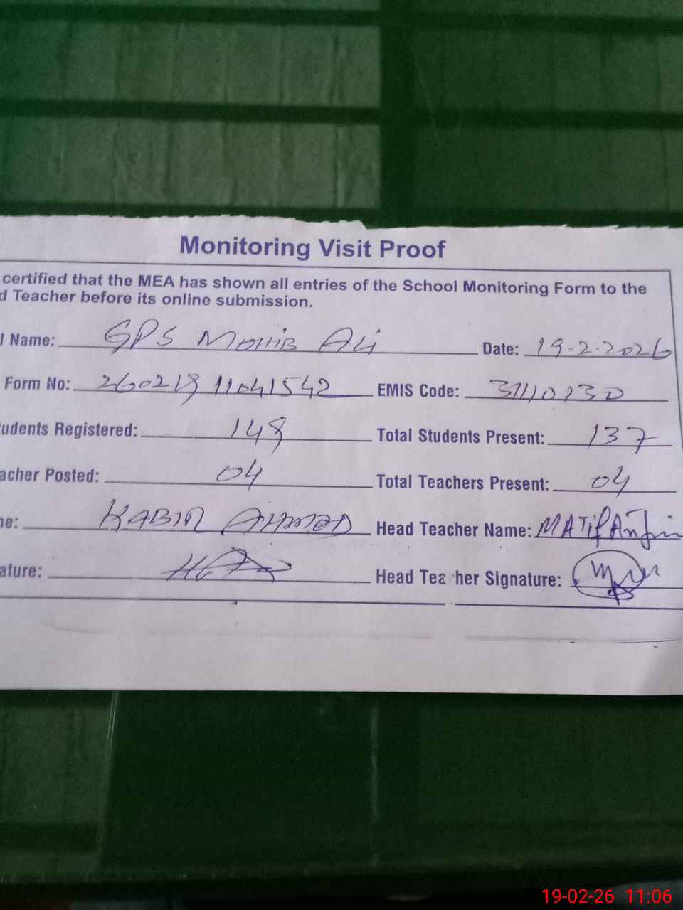 | EMIS Code: 31110130 | Name of School: GPS MOHIB ALI | |||