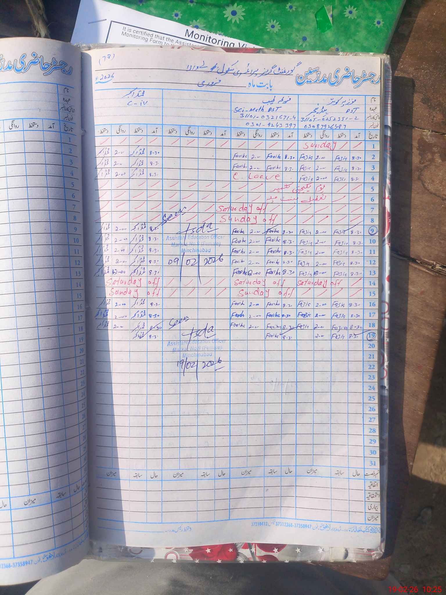 | Name: FO**** KO**** Designation: (School Headmaster's/Headmistress's) PST Phone/Cell Number: 03**** |