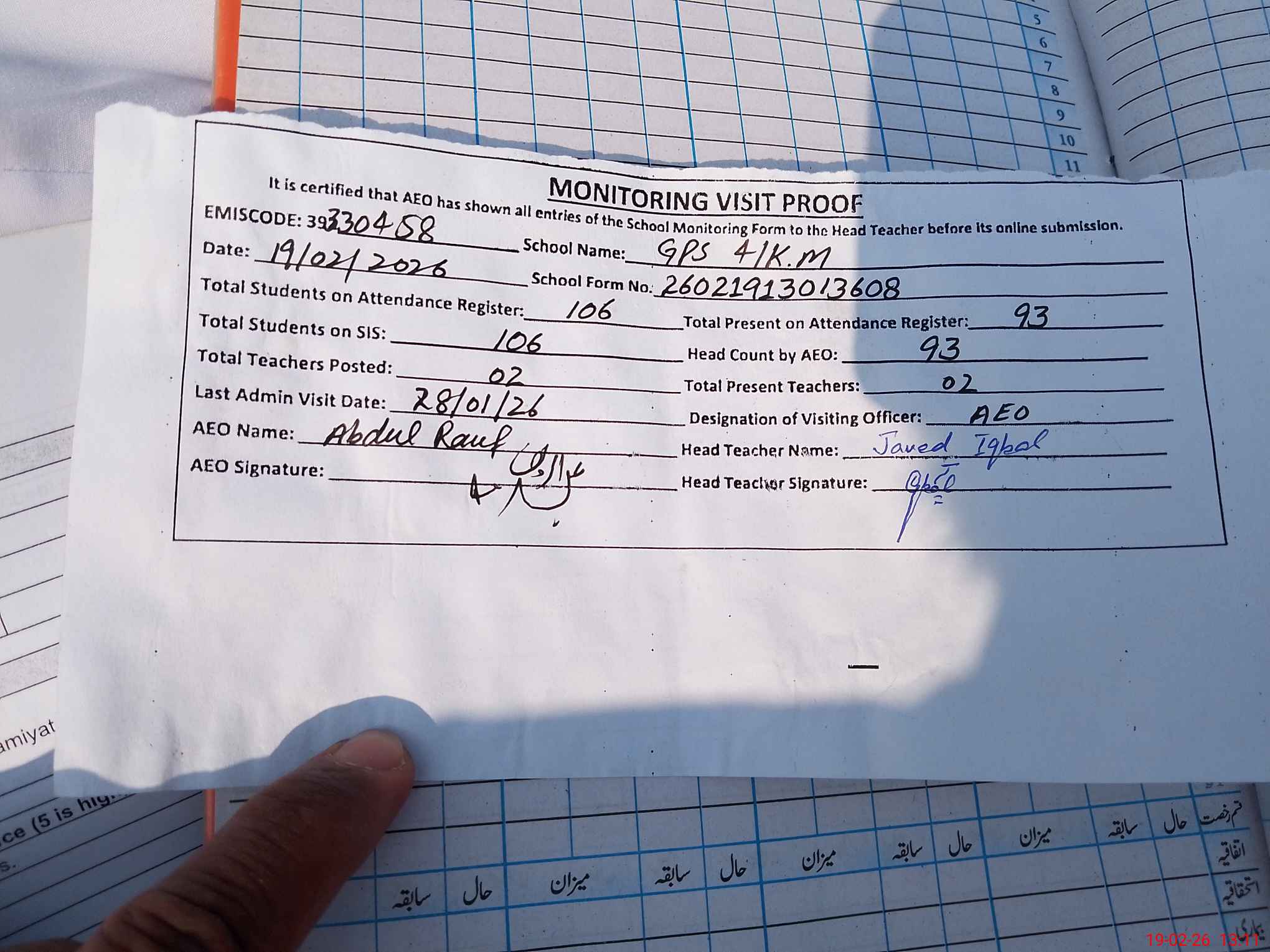 | EMIS Code: 39330458 | Name of School: GPS CHAK NO. 4 KM | |||