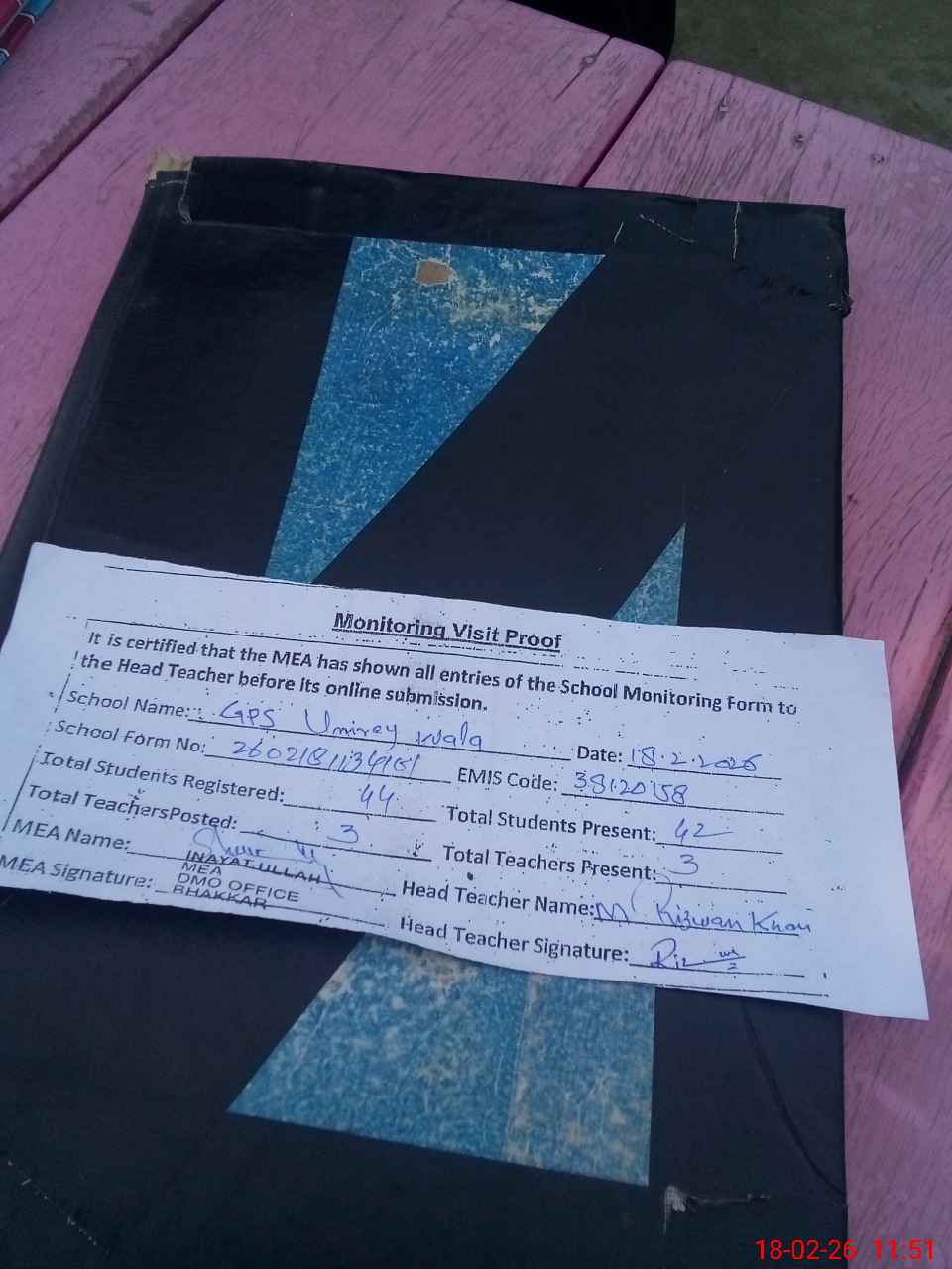 | EMIS Code: 38120158 | Name of School: GPS UMRAY WALA | |||
