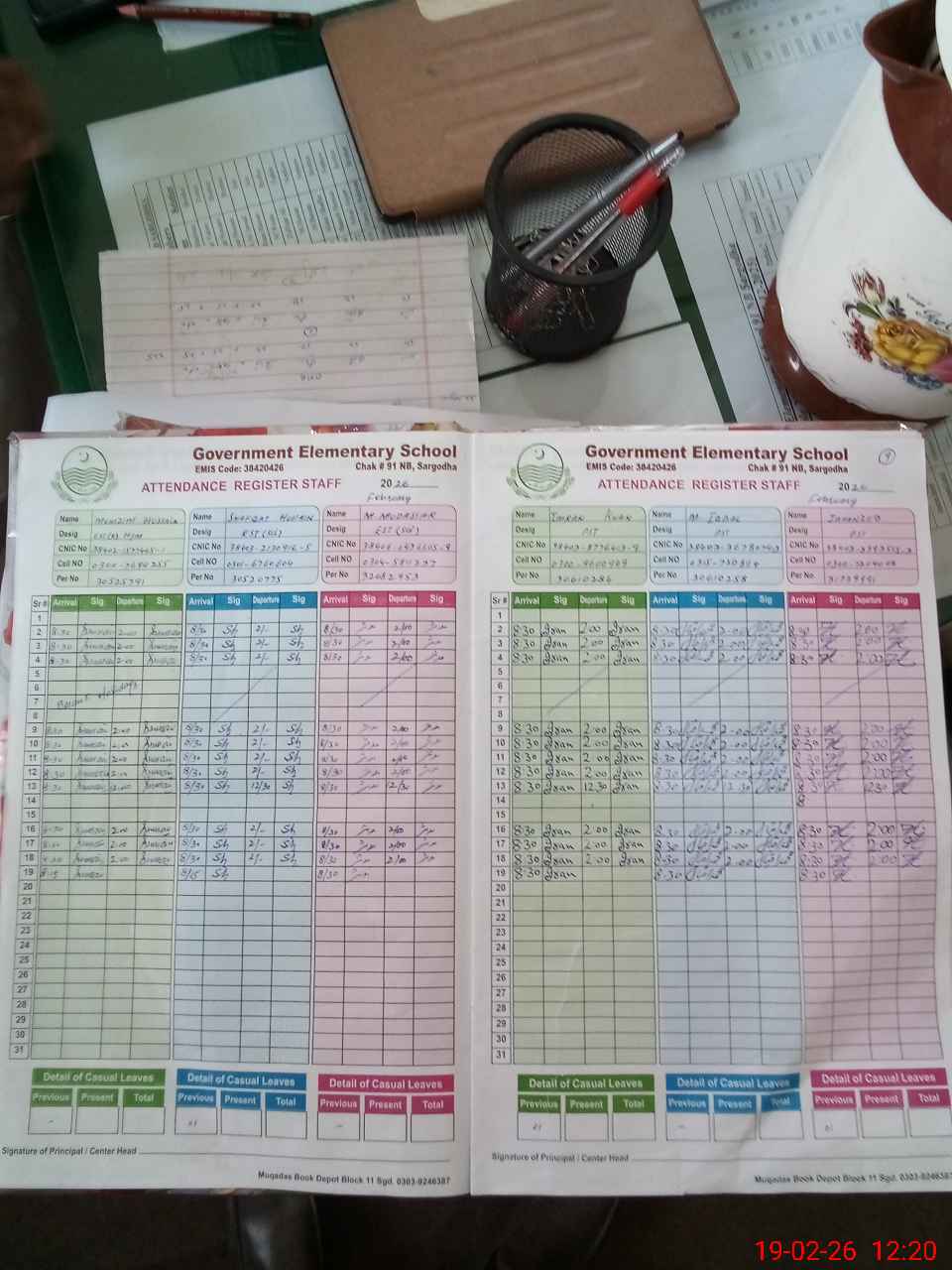 | CNIC | Full Name | Designation | R/C | Absence during last cal. month |
