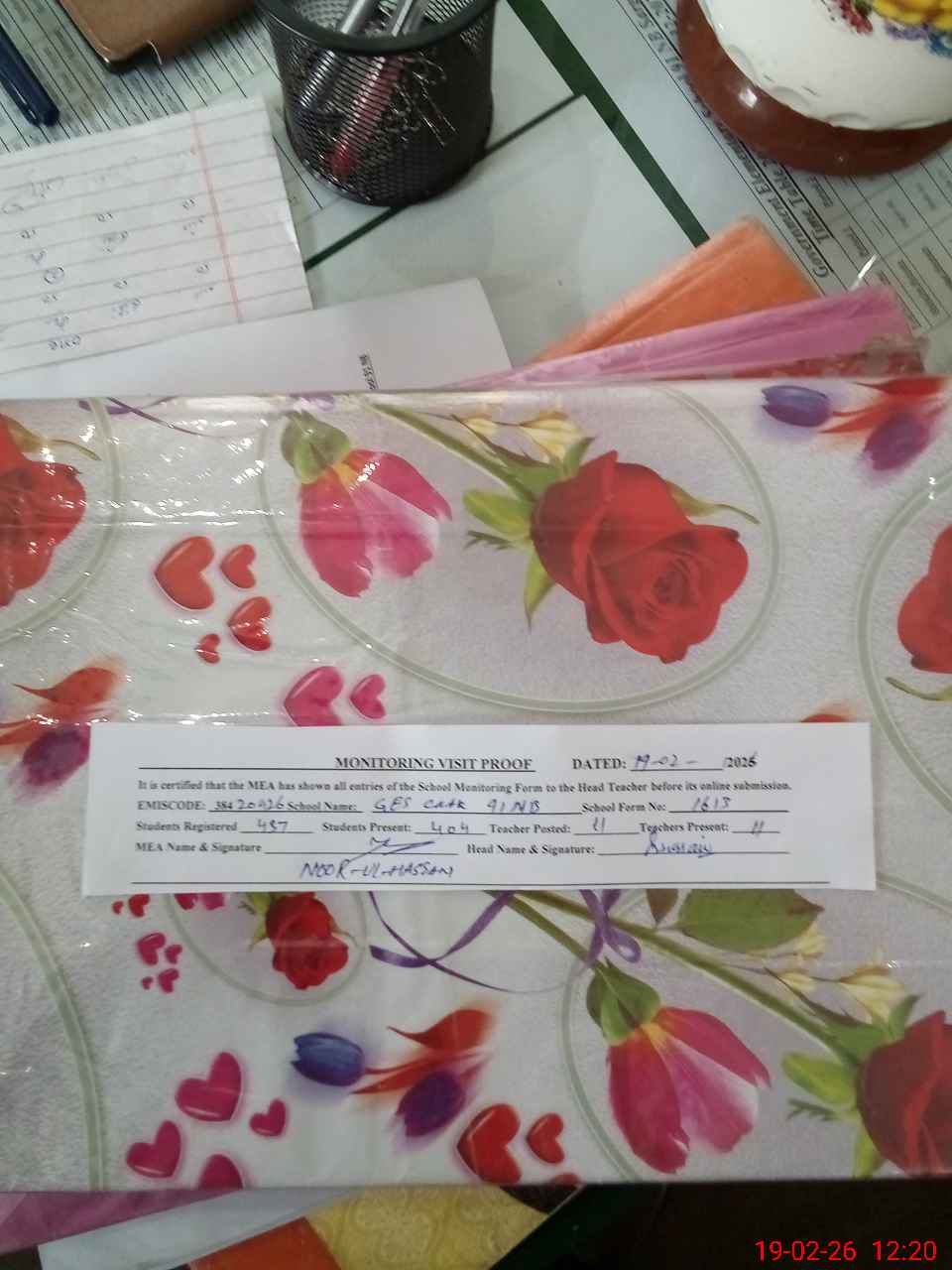 | Attendance Register | Head Teacher | MEA with School | Visit Proof |
