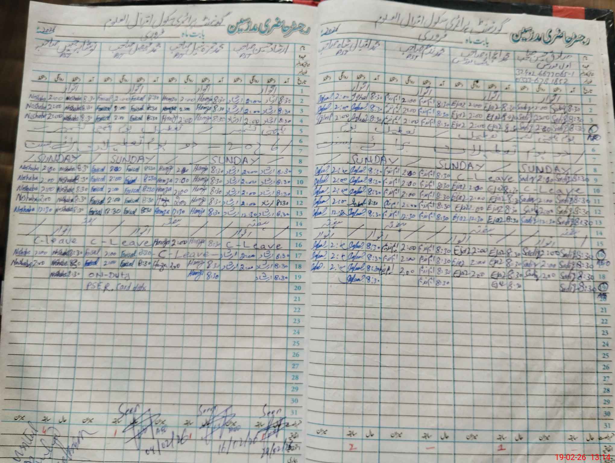 | CNIC | Full Name | Designation | R/C | Absence During Last Calender Month |