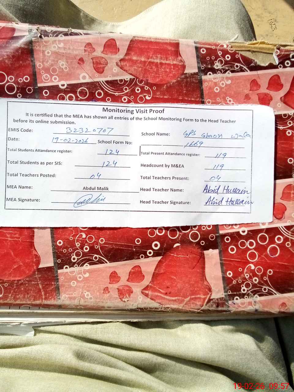 | EMIS Code: 32320707 | Name of School: GPS GHAON WALA | |||