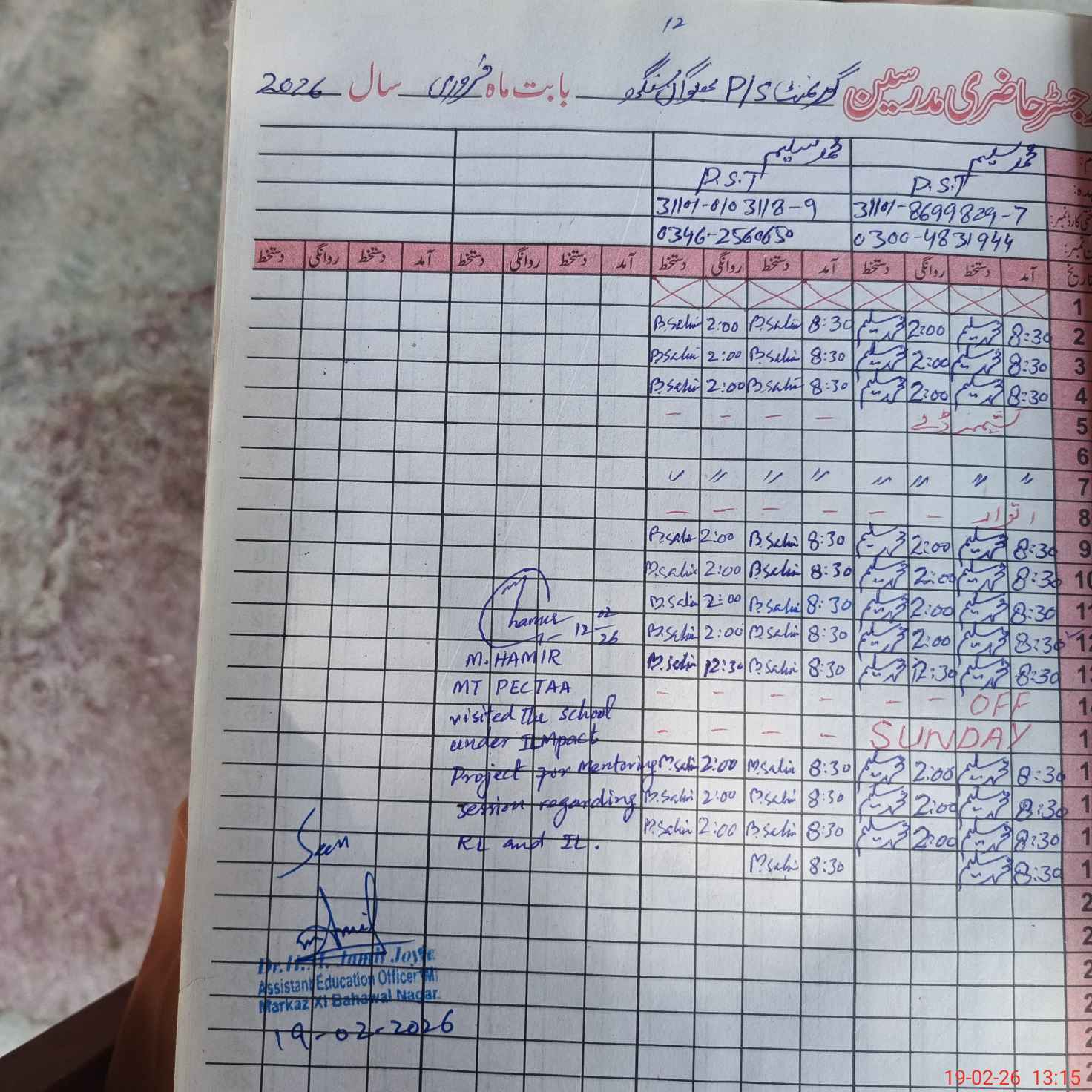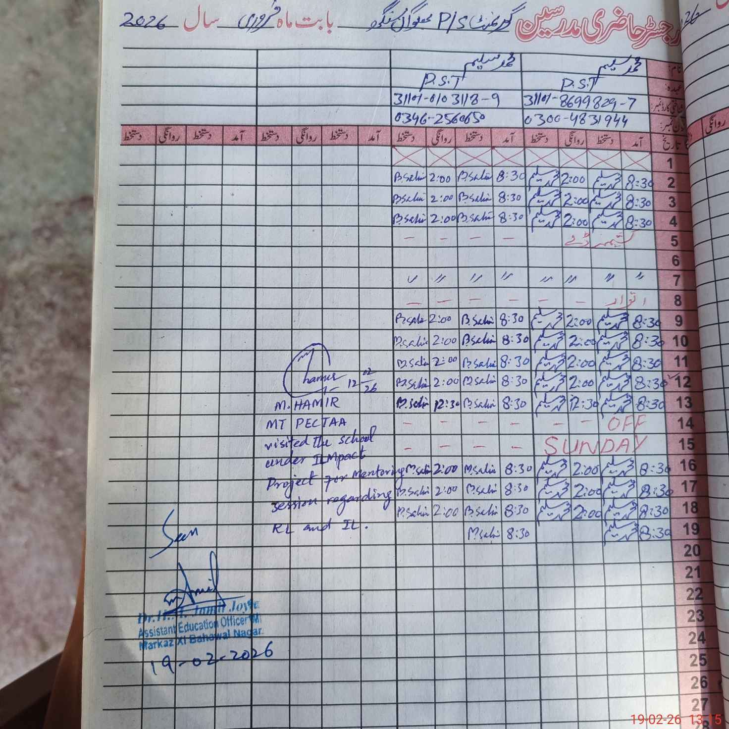 | Name: MU**** YO**** Designation: (School Headmaster's/Headmistress's) PST Phone/Cell Number: 03**** |