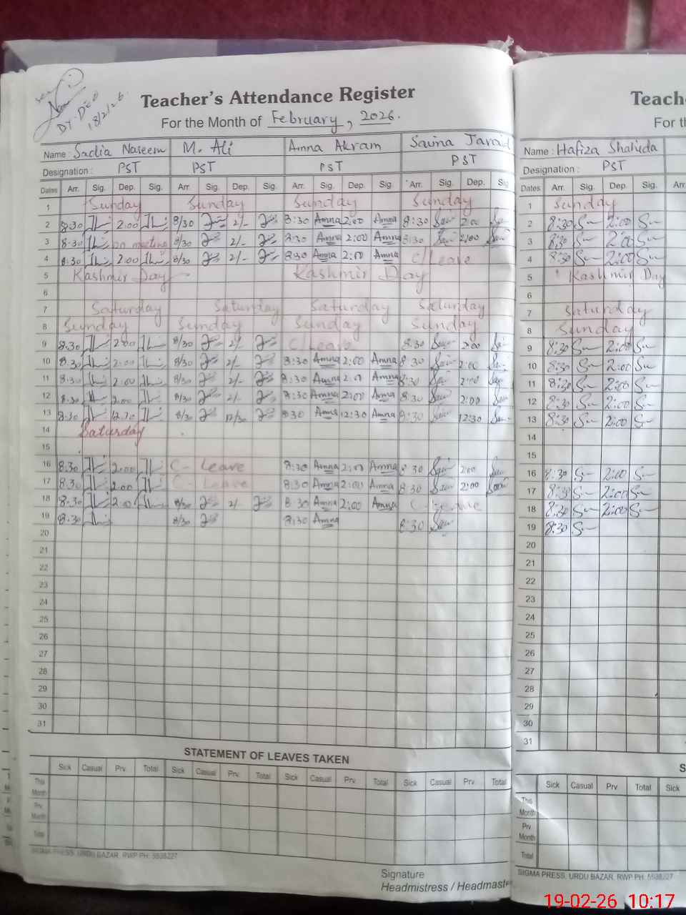 | Leave | Duty | Absent | Maternity | Medical | Ex- Pak |