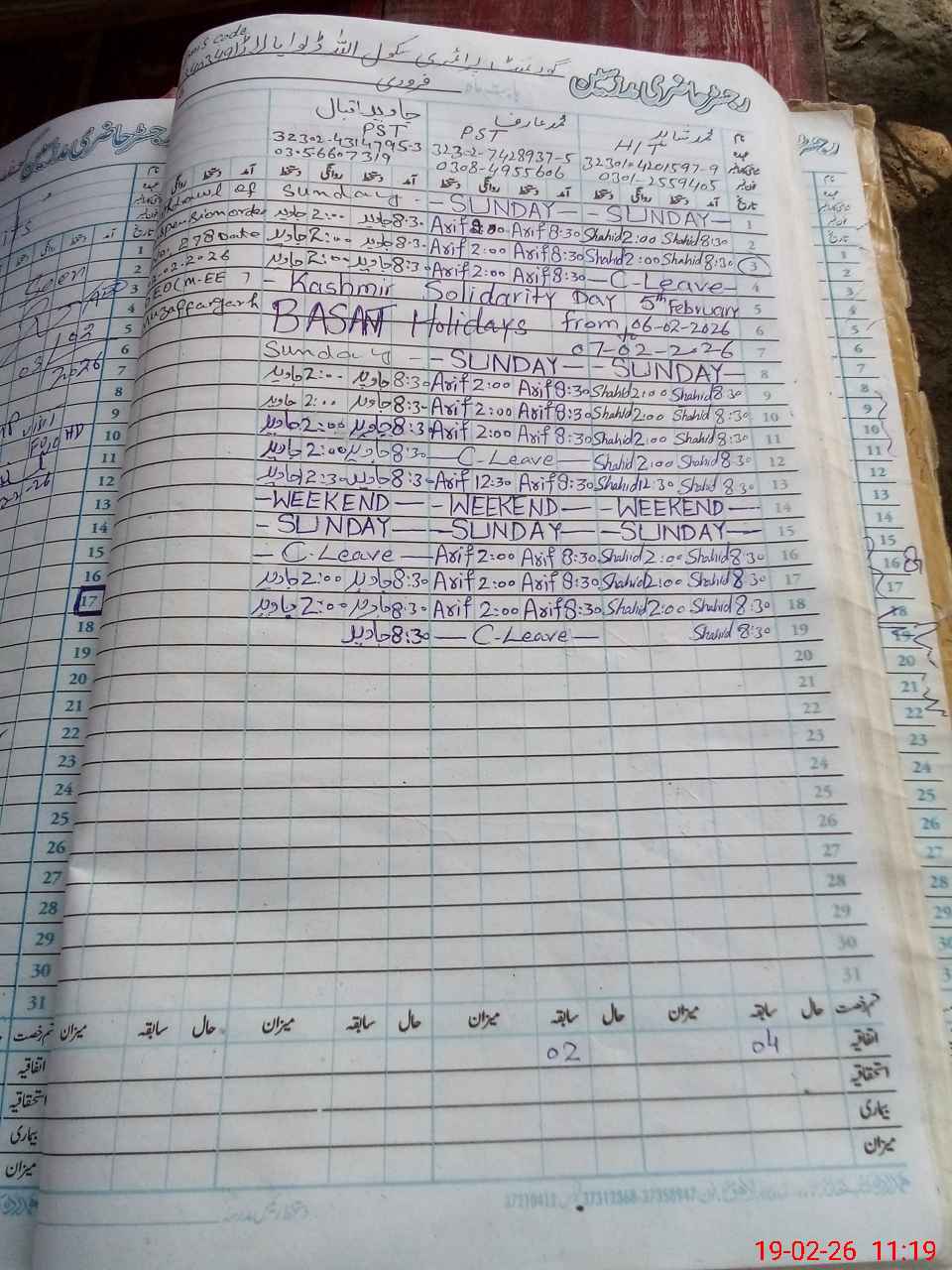 | CNIC | Full Name | Designation | R/C | Absence During Last Calender Month |