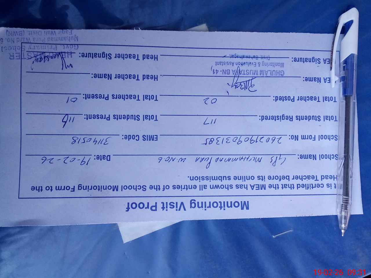 | EMIS Code: 31140518 | Name of School: GPS MUHAMMAD PURA WARD NO.6 | |||