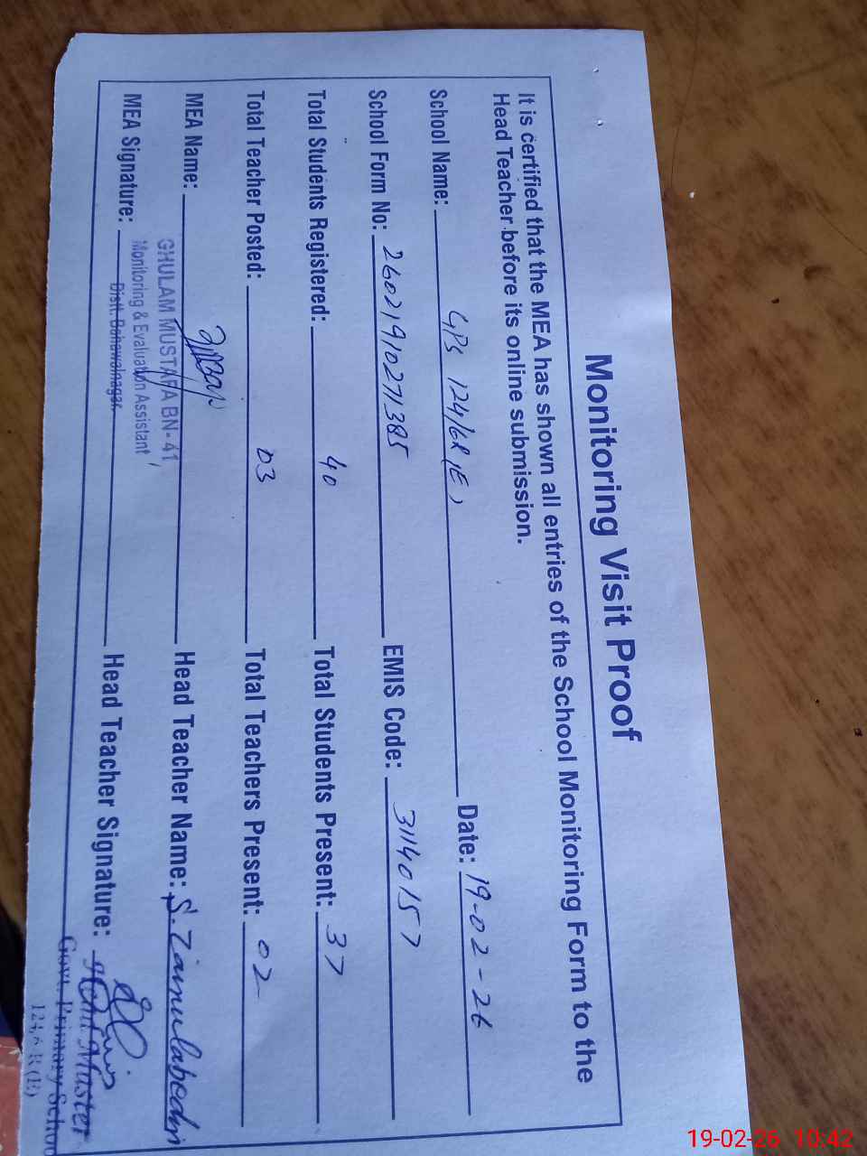 | EMIS Code: 31140157 | Name of School: GPS CHAK NO 124/6-R E | |||