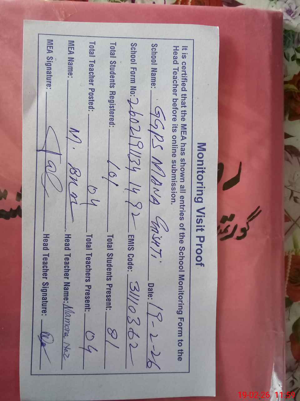 | Certified that this School was Inspected by the Undersigned MEA/DMO Today and the Information Stated Above is as Per Record. | |||||
