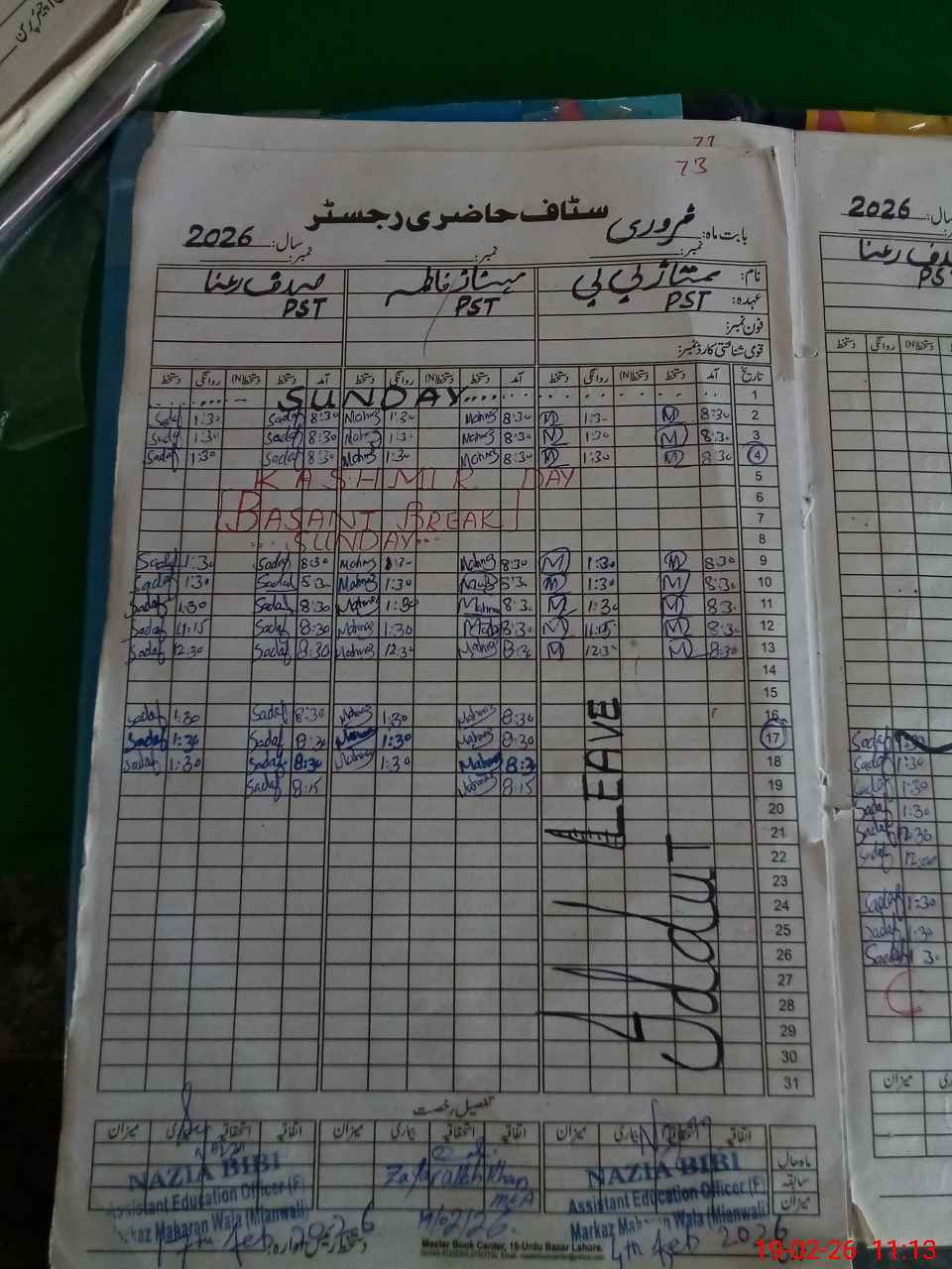| Leave | Duty | Absent | Maternity | Medical | Ex- Pak |