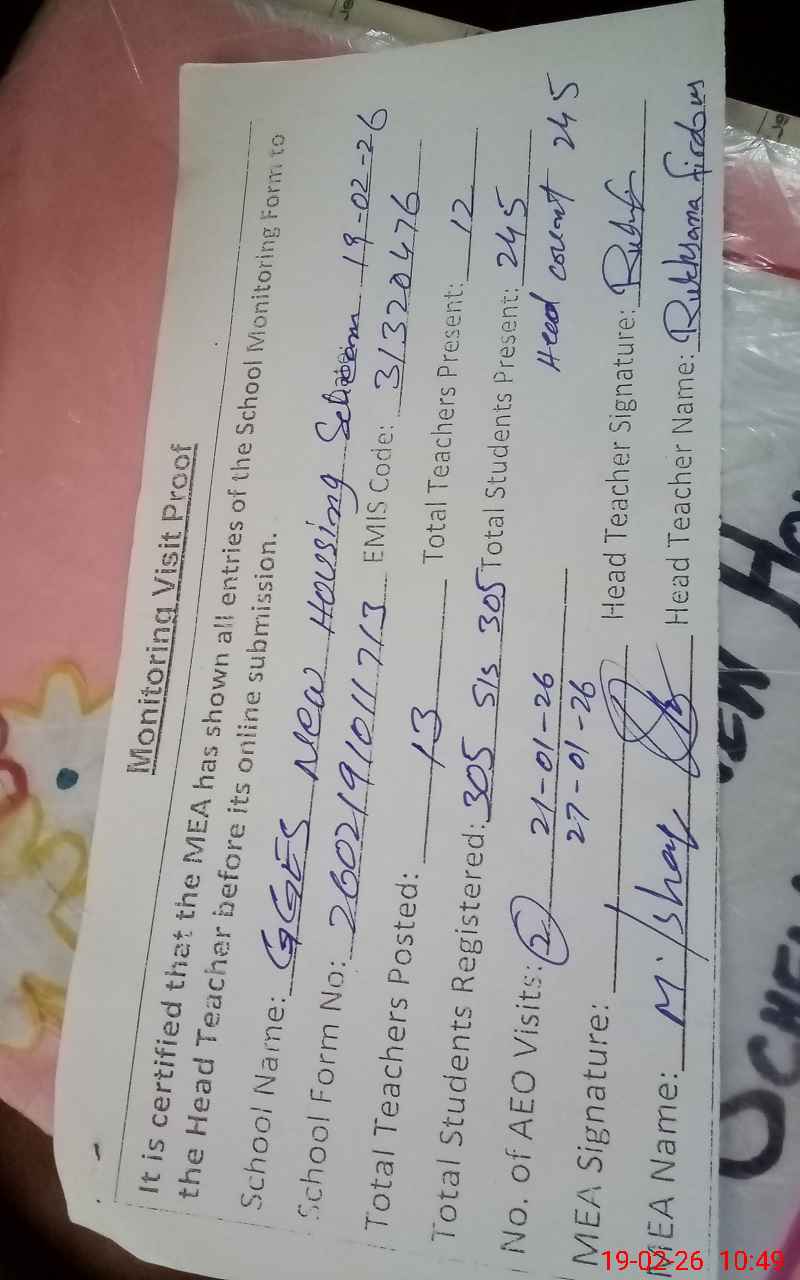 | Certified that this School was Inspected by the Undersigned MEA/DMO Today and the Information Stated Above is as Per Record. | |||||