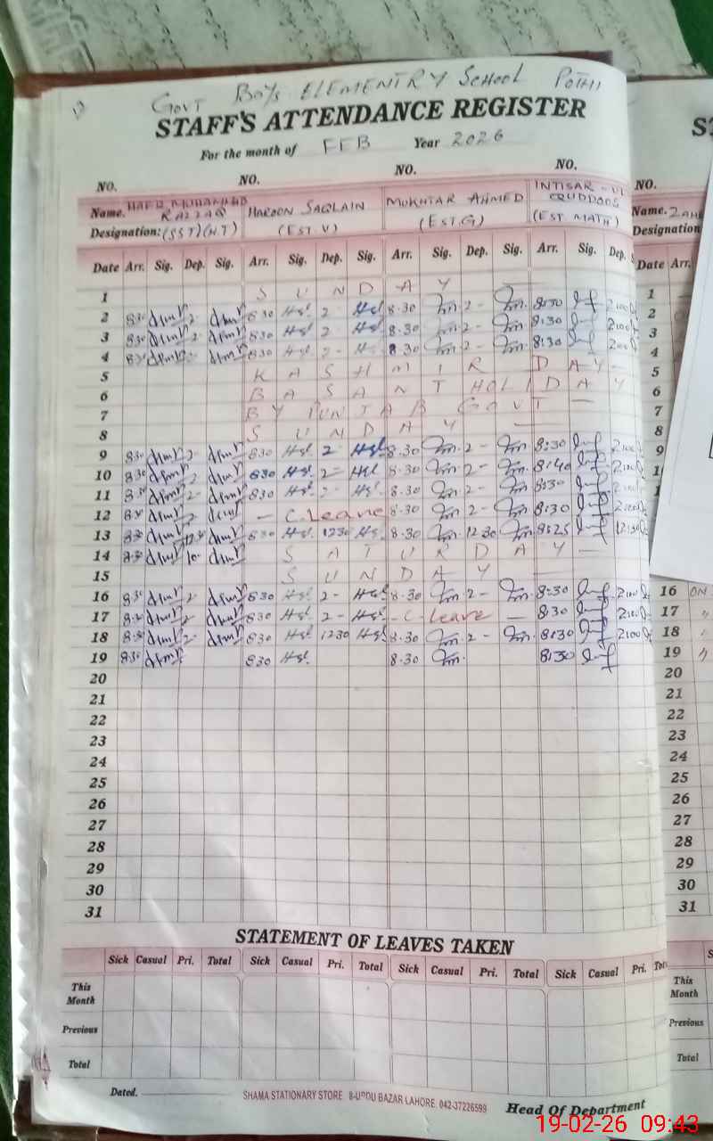 | Name: HA**** AB**** RA**** Designation: (School Headmaster's/Headmistress's) SST (G) Phone/Cell Number: 03**** |