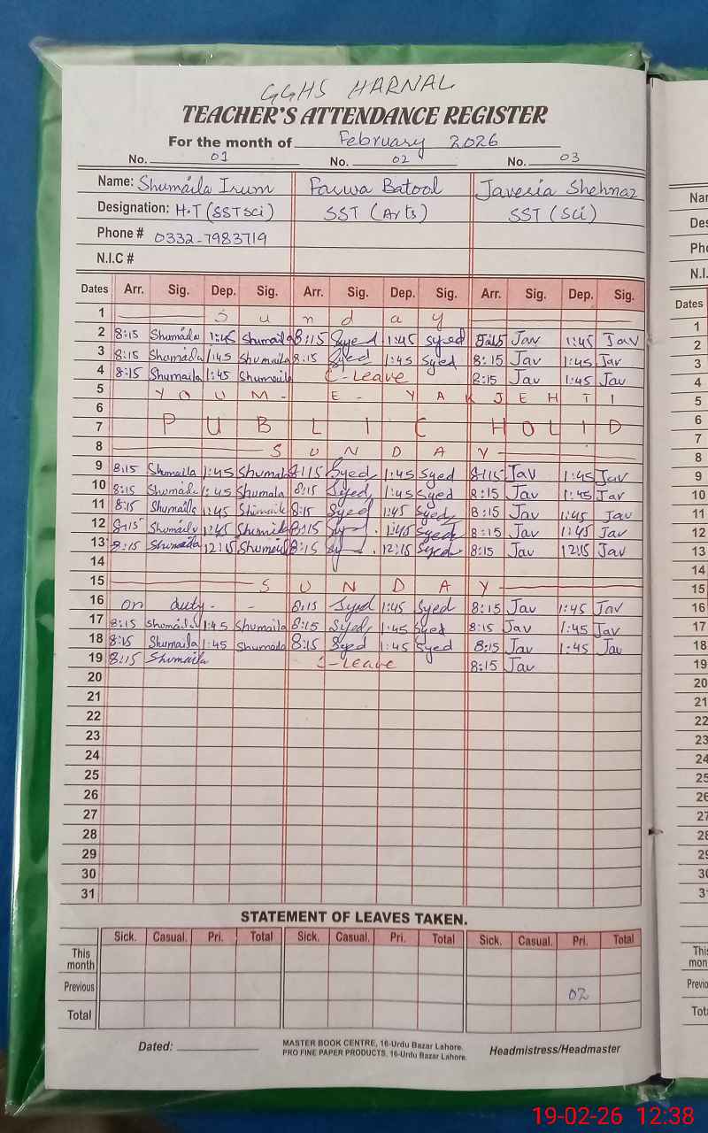 | 37**** | Zu**** Na**** | EST Science | Regular | 0 | 0 | 31 | 0 | 0 | 0 | 0 | 0 | 0 | Absent (Un-Authorized) |