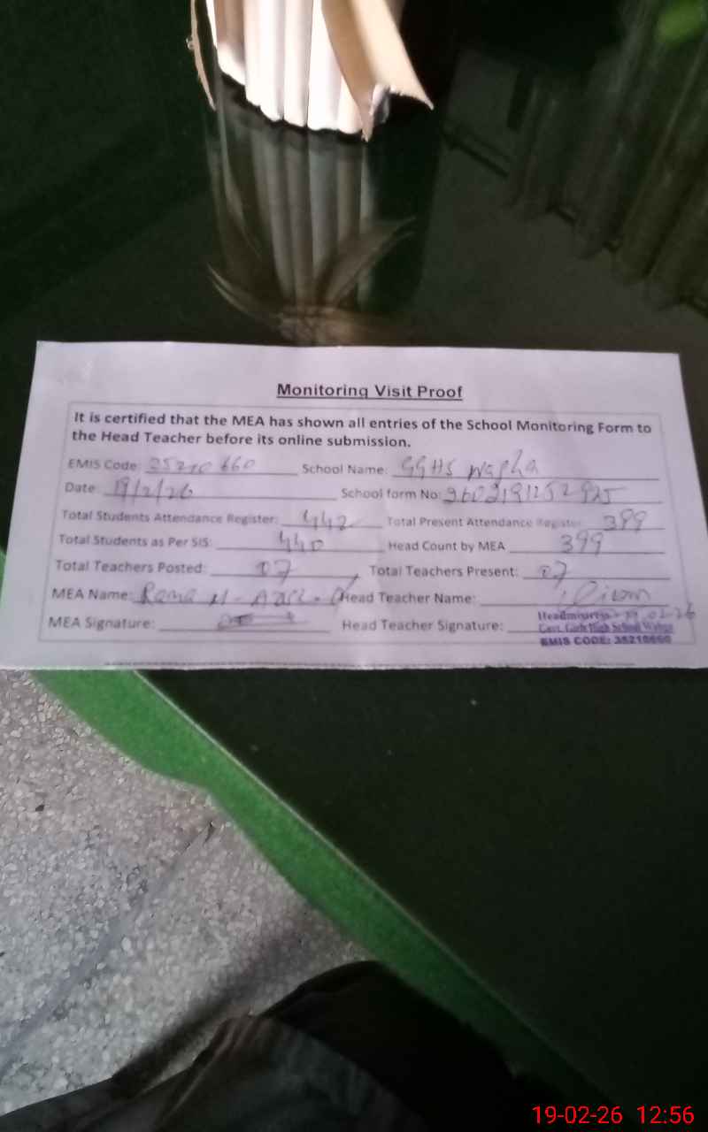 | EMIS Code: 35210660 | Name of School: GGHS WAHGA(Newly upgraded) | |||