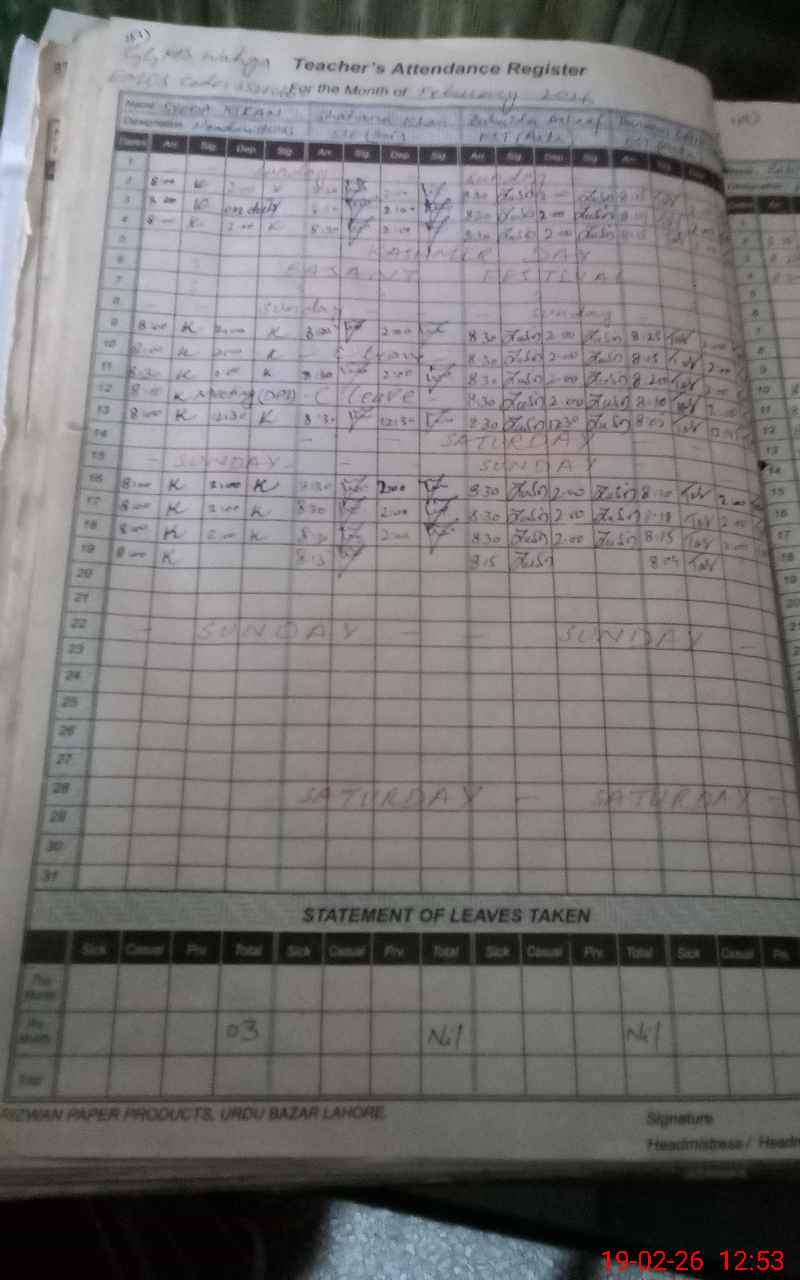 | Name: Sy**** Ki**** Designation: (School Headmaster's/Headmistress's) Head Mistress Phone/Cell Number: 03**** |