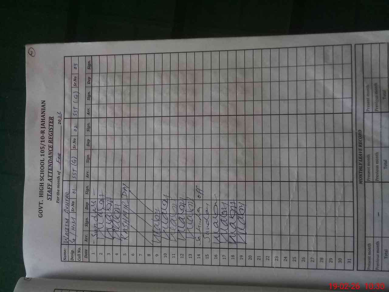 | 36**** | Na**** | PST Science/Maths | Regular | 0 | 0 | 0 | 0 | 0 | 0 | 0 | 0 | 0 | Casual |