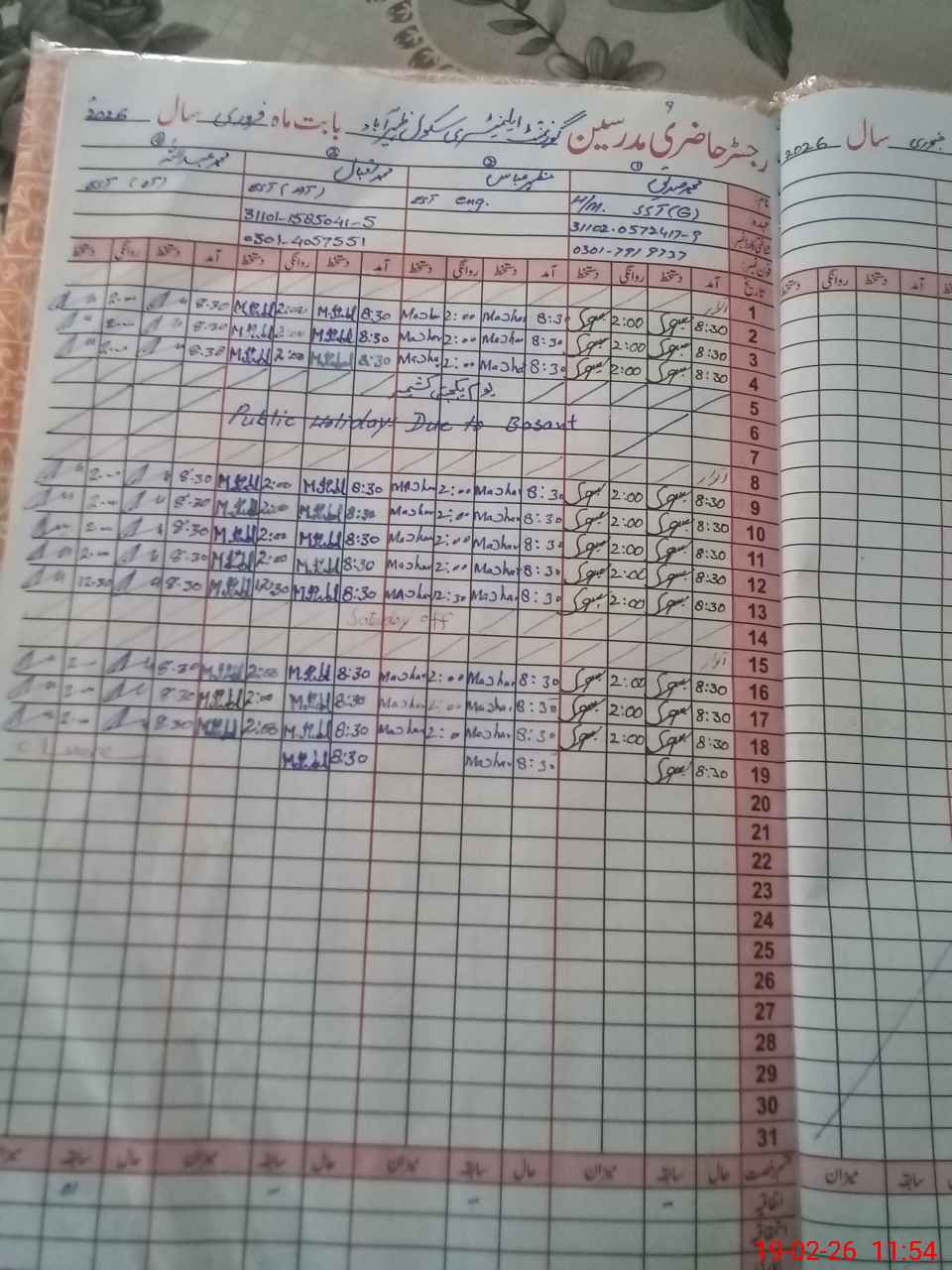 | Name: MSa**** Designation: (School Headmaster's/Headmistress's) SST Gen HM Phone/Cell Number: 03**** |