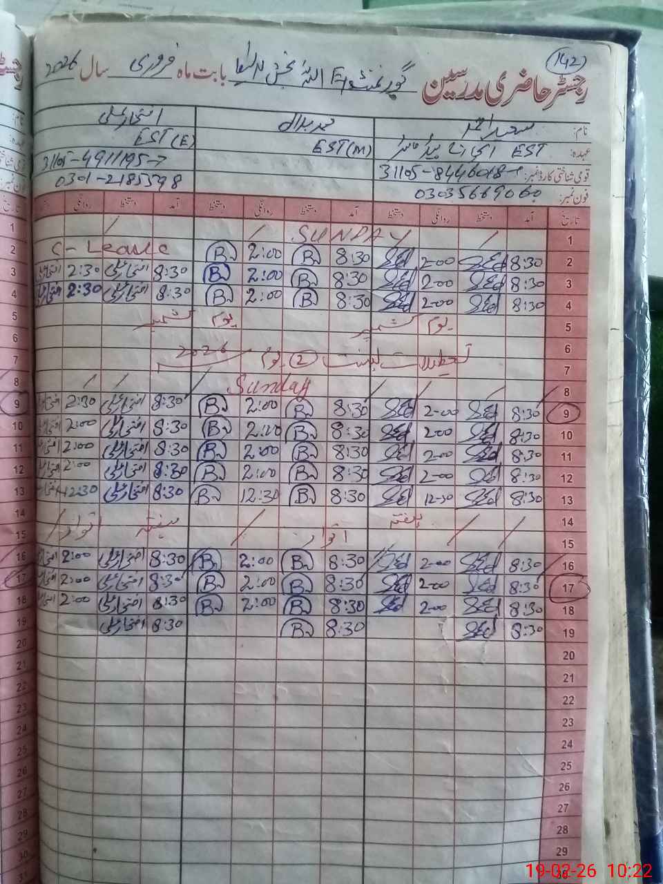 | Name: MU**** AM**** Designation: (School Headmaster's/Headmistress's) S.S.T.(SC) Phone/Cell Number: 03**** |
