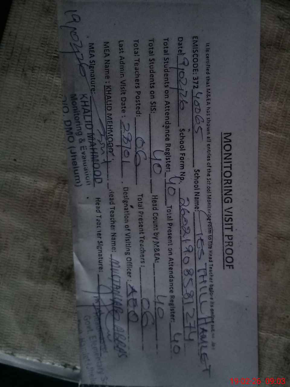 | Certified that this School was Inspected by the Undersigned MEA/DMO Today and the Information Stated Above is as Per Record. | |||||