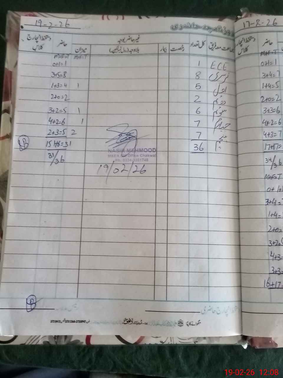 | Certified that this School was Inspected by the Undersigned MEA/DMO Today and the Information Stated Above is as Per Record. | |||||