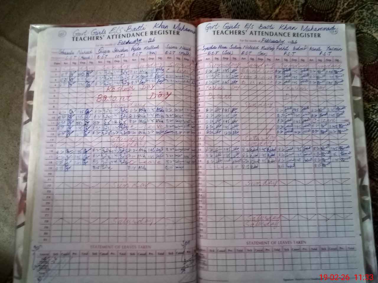 | Leave | Duty | Absent | Maternity | Medical | Ex- Pak |