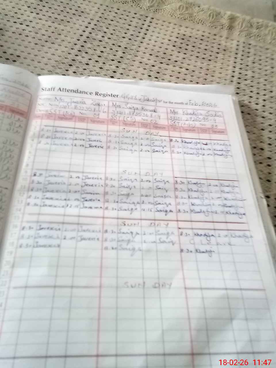 | Name: Ja**** Za**** Designation: (School Headmaster's/Headmistress's) I/c HEADMISTRESS Phone/Cell Number: 03**** |