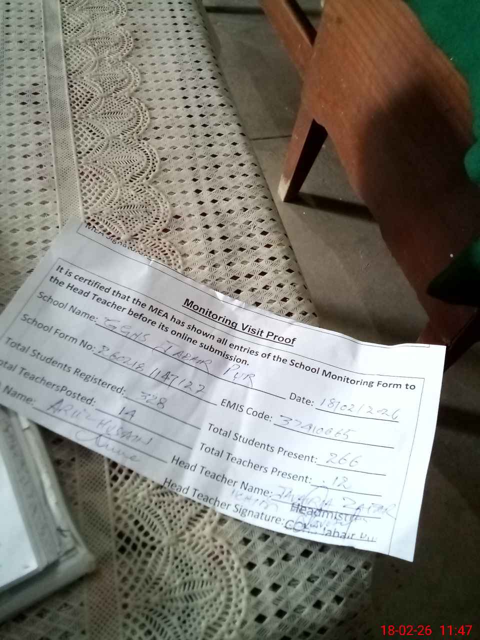| EMIS Code: 37410065 | Name of School: GGHS JABAIR PUR CHAKWAL | |||