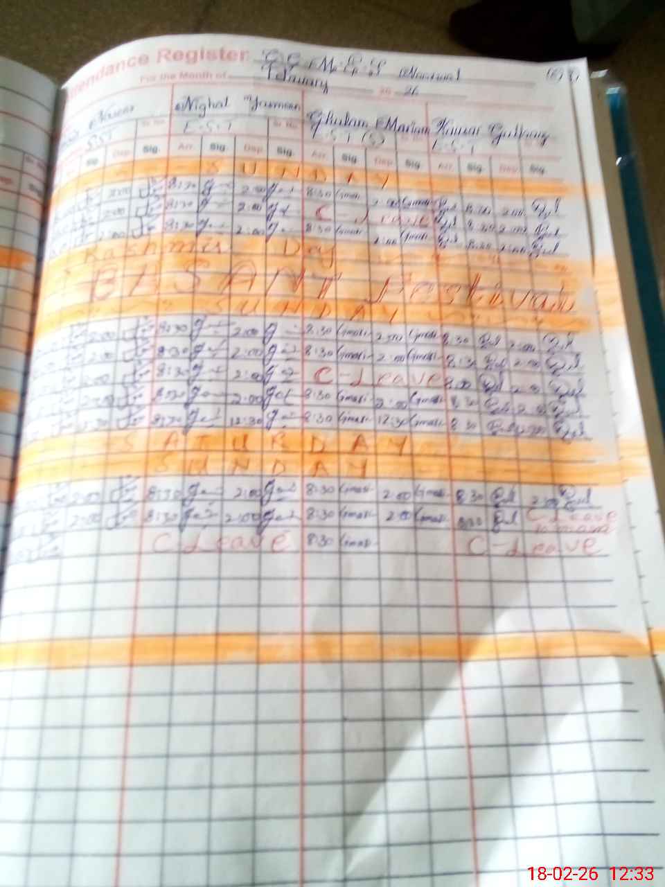 | CNIC | Full Name | Designation | R/C | Absence During Last Calender Month |