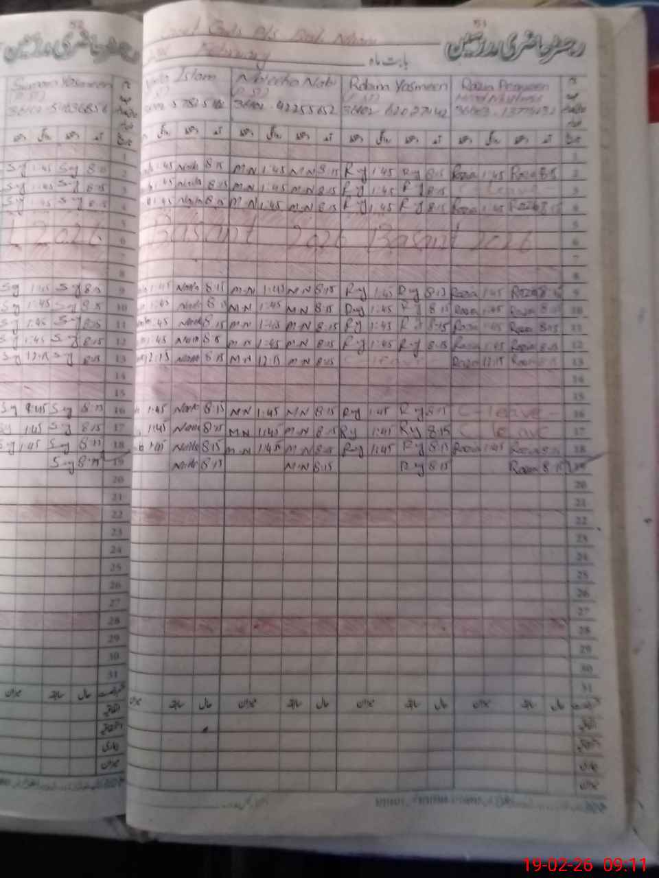 | CNIC | Full Name | Designation | R/C | Absence During Last Calender Month |