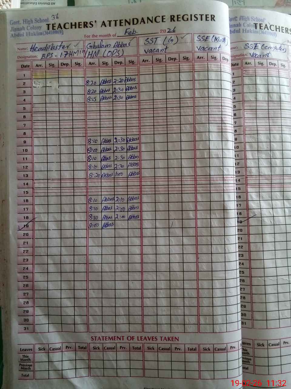 | EMIS Code: 36410069 | Name of School: GHS JINNAH COLONY, ABDUL HAKIM | |||