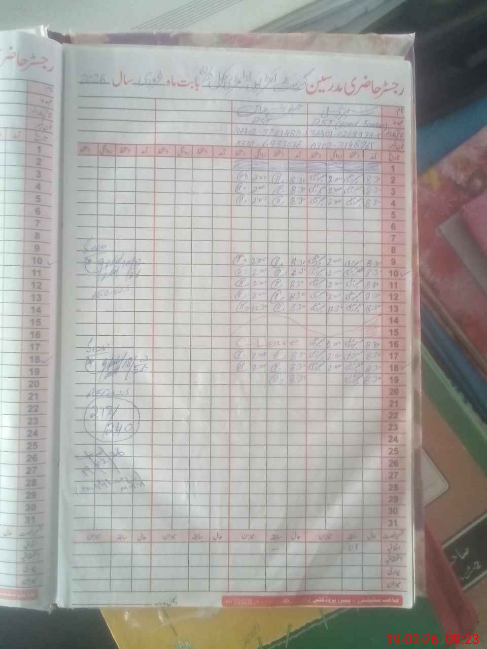 | CNIC | Full Name | Designation | R/C | Absence During Last Calender Month |