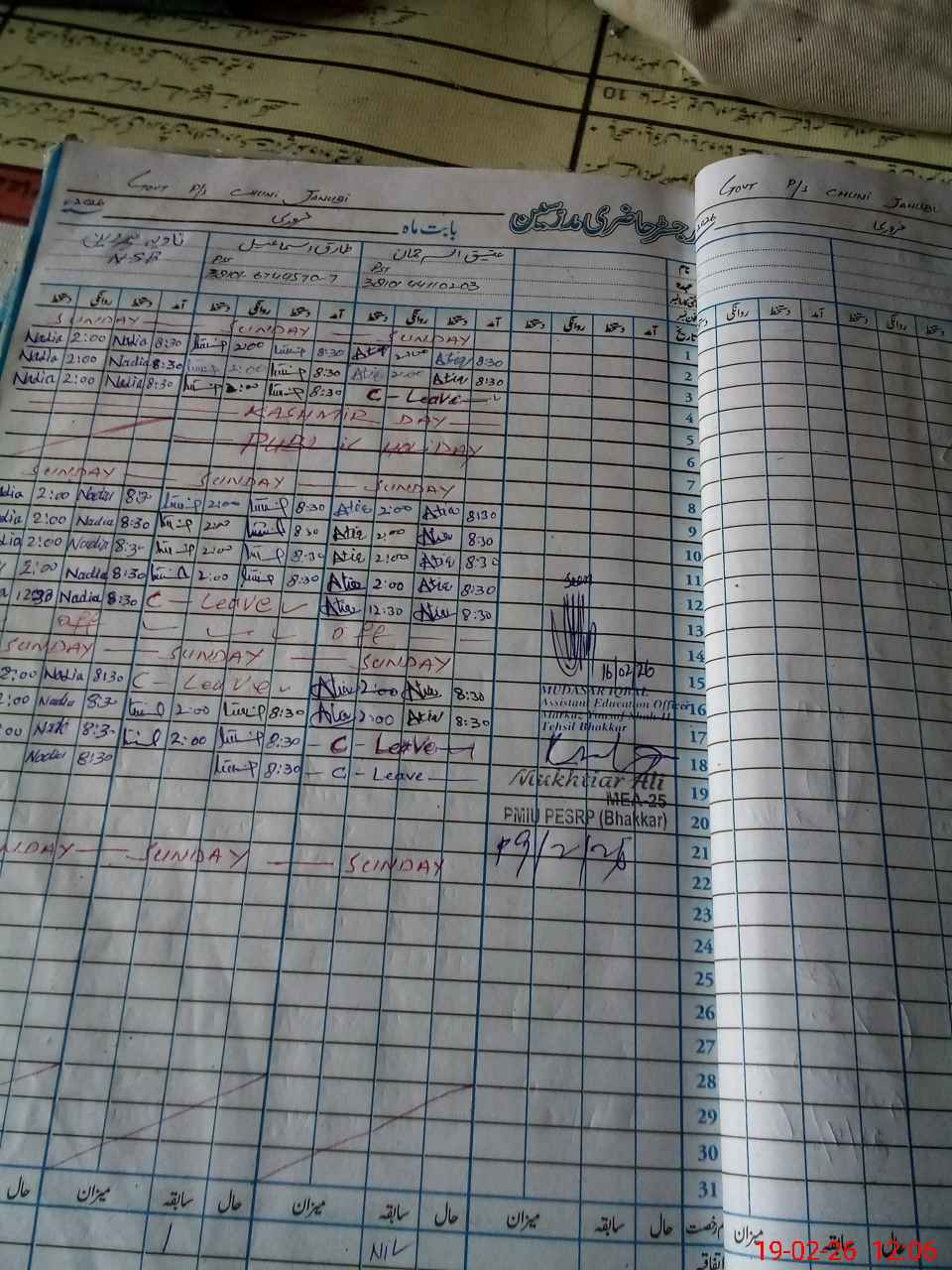 | PP No.: 92 | NA No.: 98 | Mauza: CHONI SOUTH | UC Name: BEHAL | UC No.: 26 |