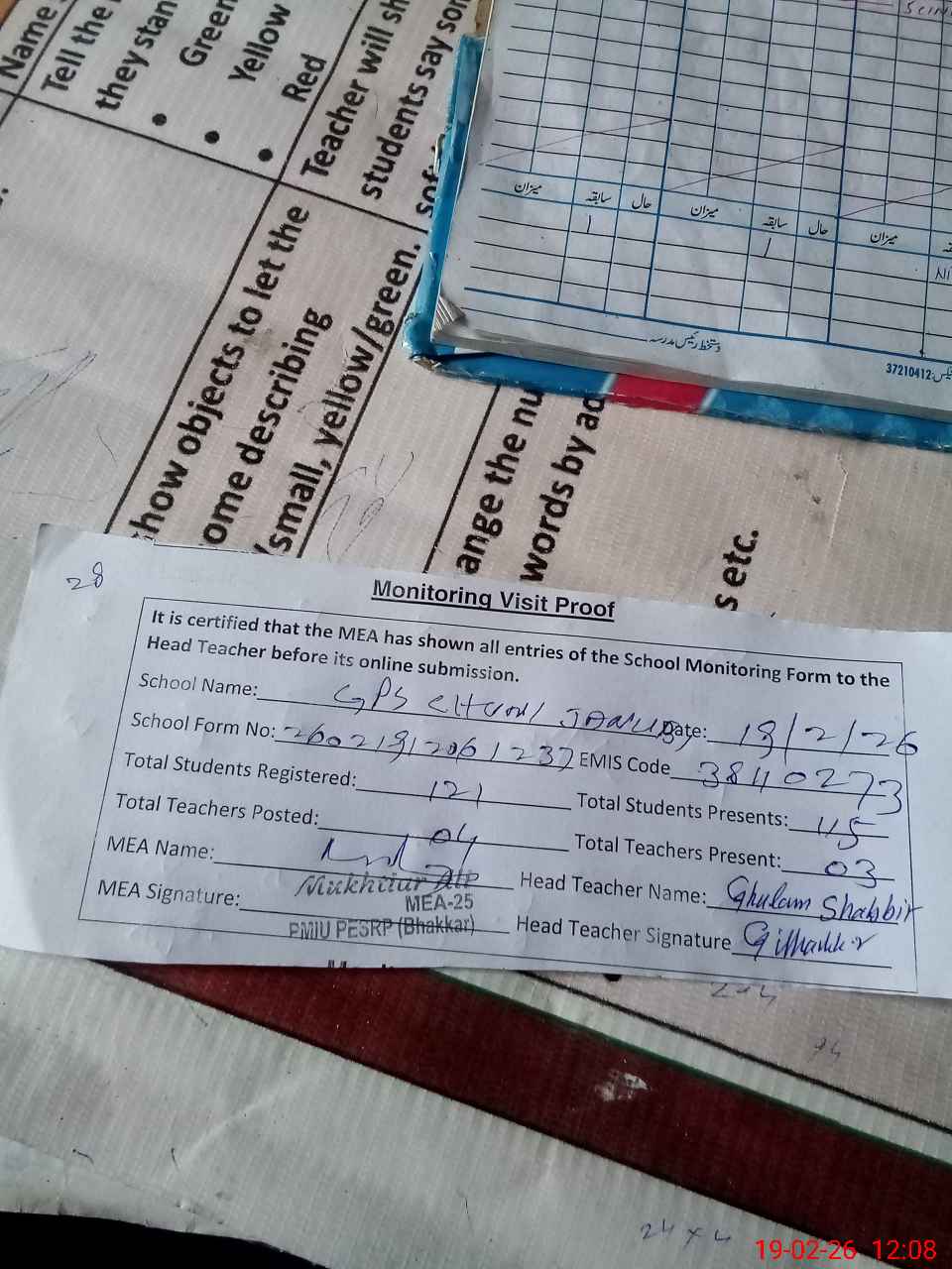 | Attendance Register | Head Teacher | MEA with School | Visit Proof |