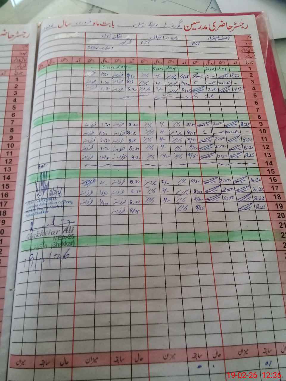| CNIC | Full Name | Designation | R/C | Absence During Last Calender Month |
