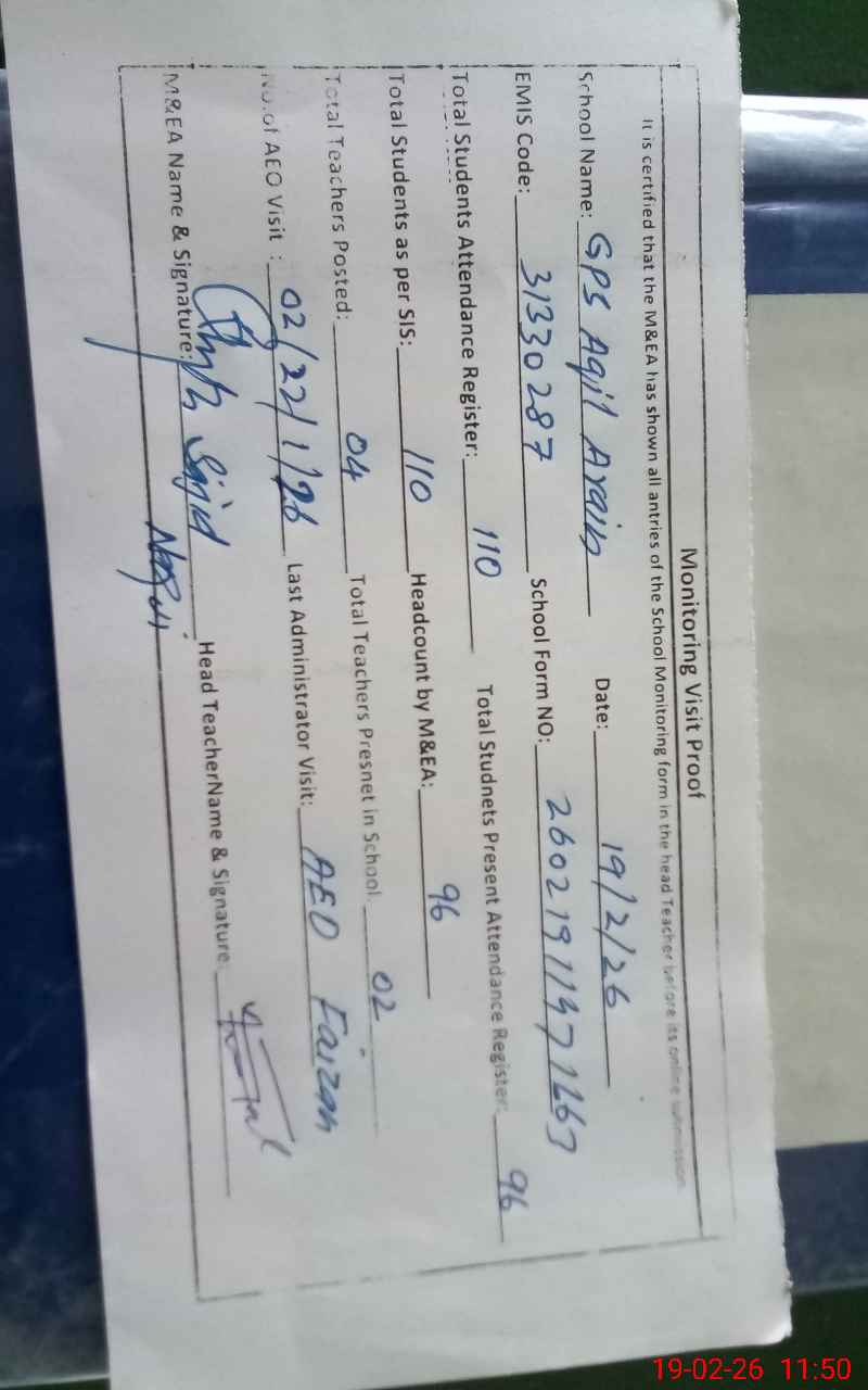 | EMIS Code: 31330287 | Name of School: GPS AQAIL ARAIN | |||