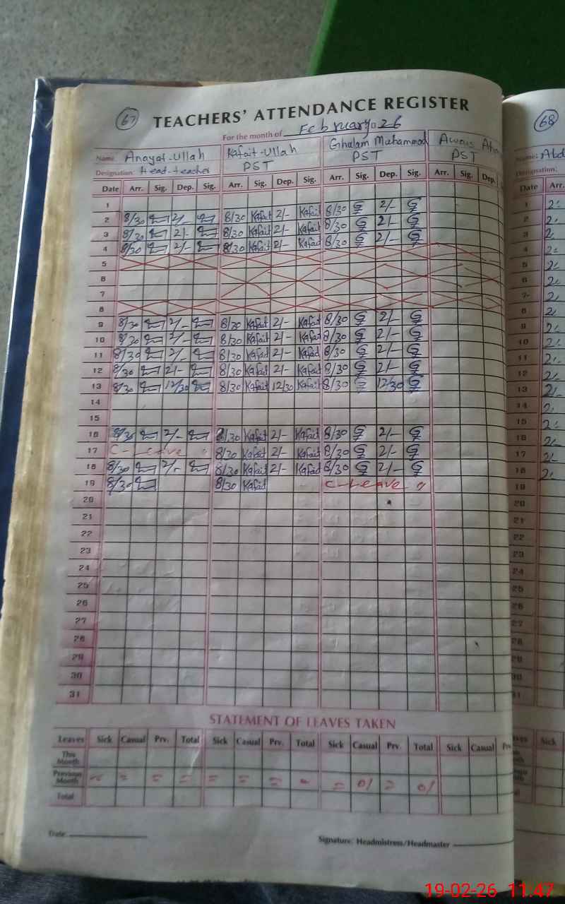 | Attendance Register | Head Teacher | MEA with School | Visit Proof |