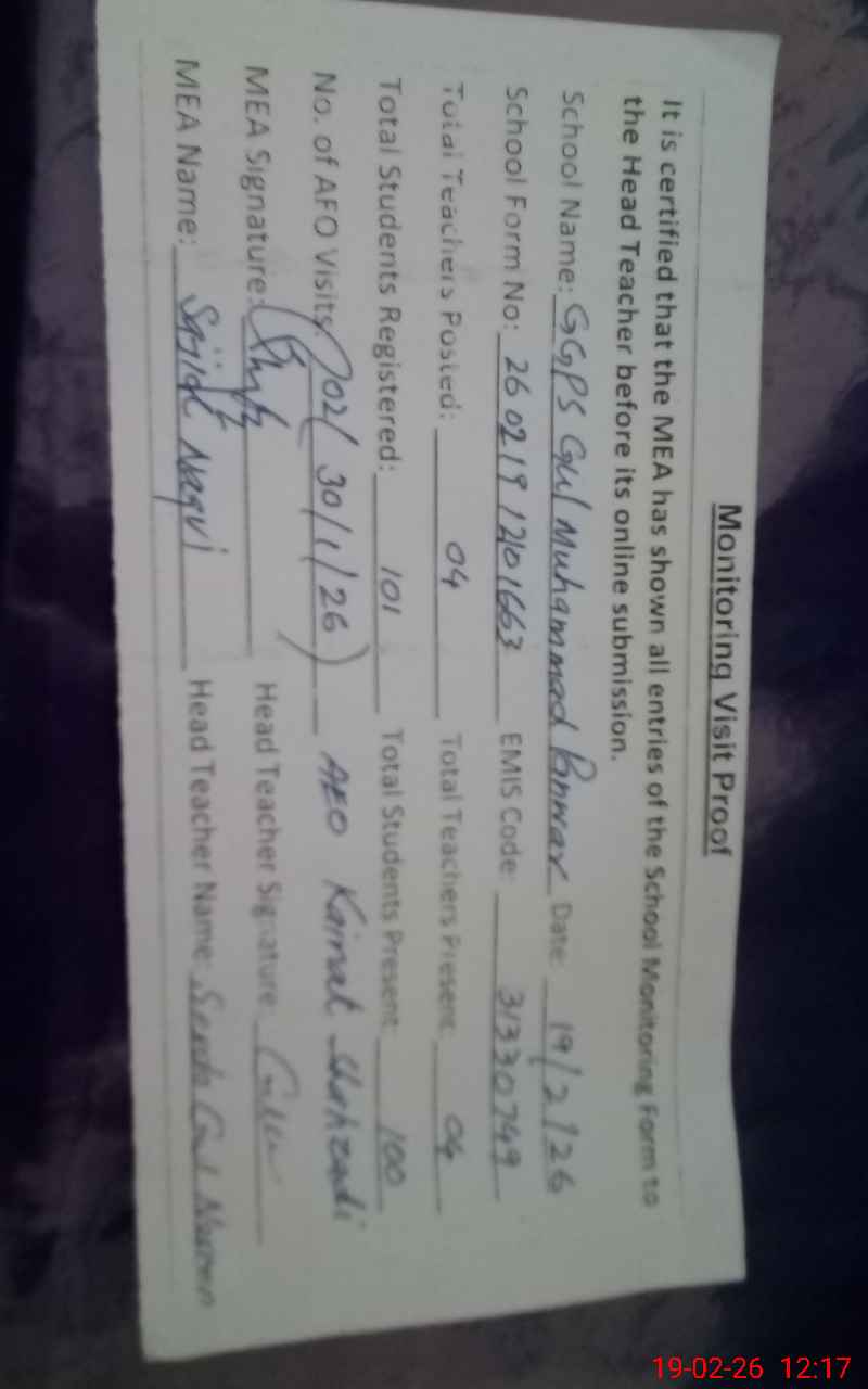 | EMIS Code: 31330749 | Name of School: GGPS GUL MUHAMMAD PANWAR | |||