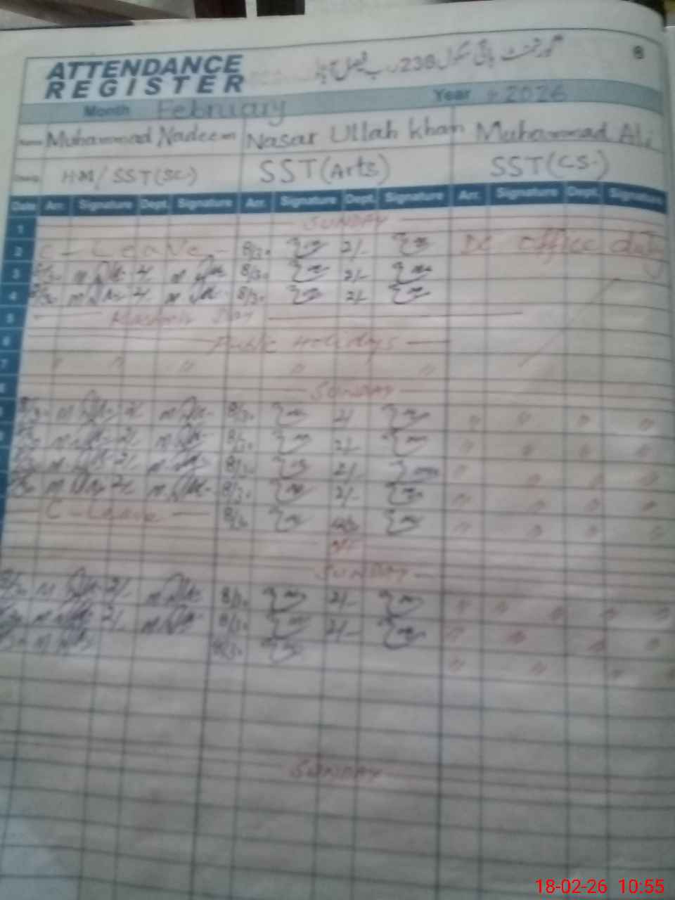 | CNIC | Full Name | Designation | R/C | Absence During Last Calender Month |