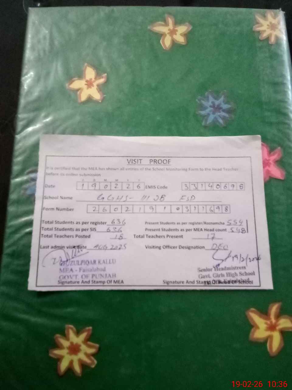 | EMIS Code: 33140577 | Name of School: GGHS CHAK 111 JB FSD | |||