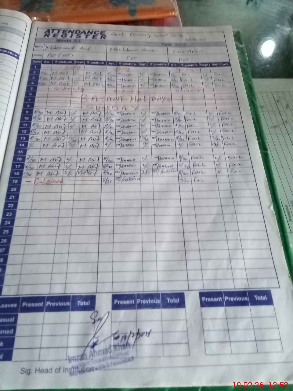 | Name: Mu**** As**** Designation: (School Headmaster's/Headmistress's) PST Phone/Cell Number: 03**** |