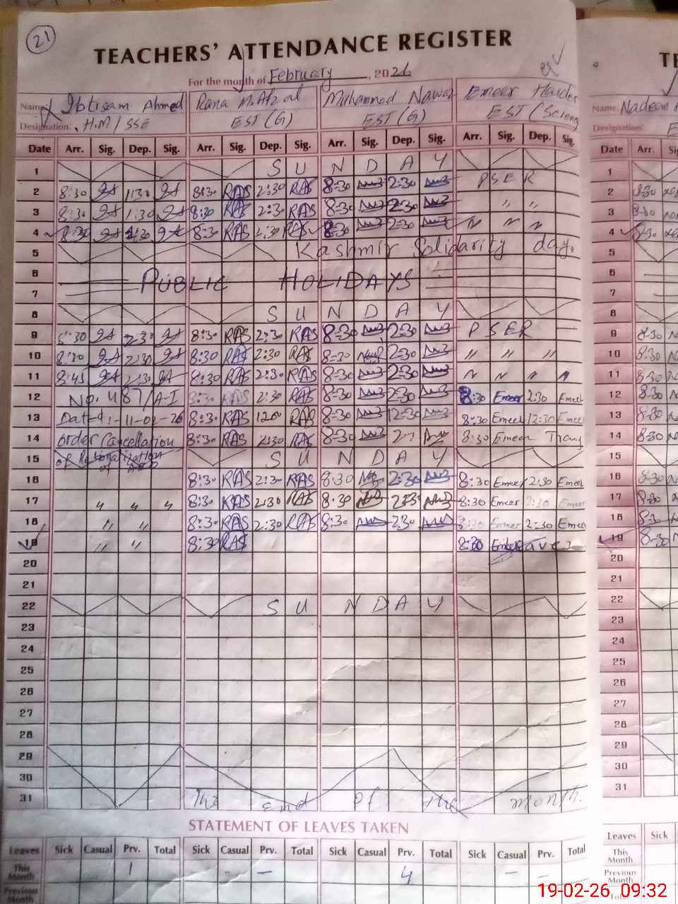 | 34**** | Mu**** Na**** | EST Urdu | Regular | 1 | 0 | 0 | 0 | 0 | 0 | 0 | 0 | 1 | Absent (Un-Authorized) |