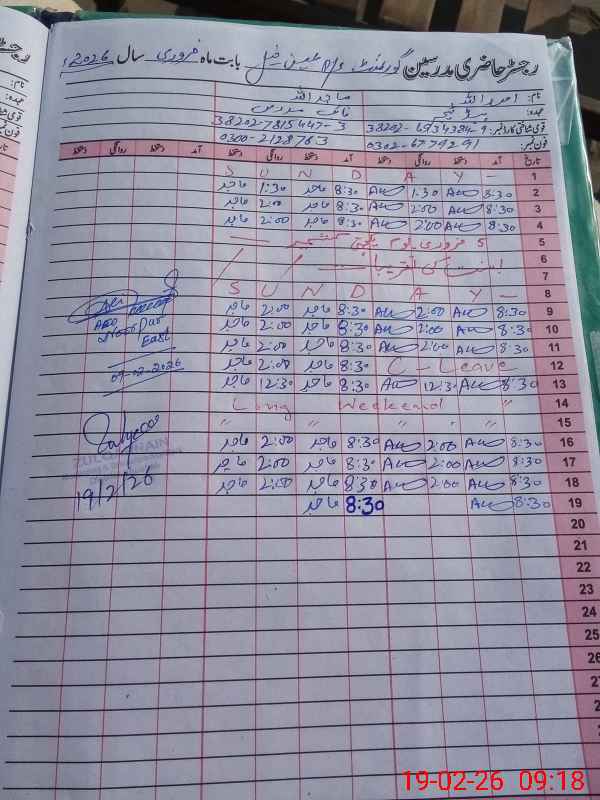 | Name: As**** Ul**** Designation: (School Headmaster's/Headmistress's) PST Phone/Cell Number: 03**** |